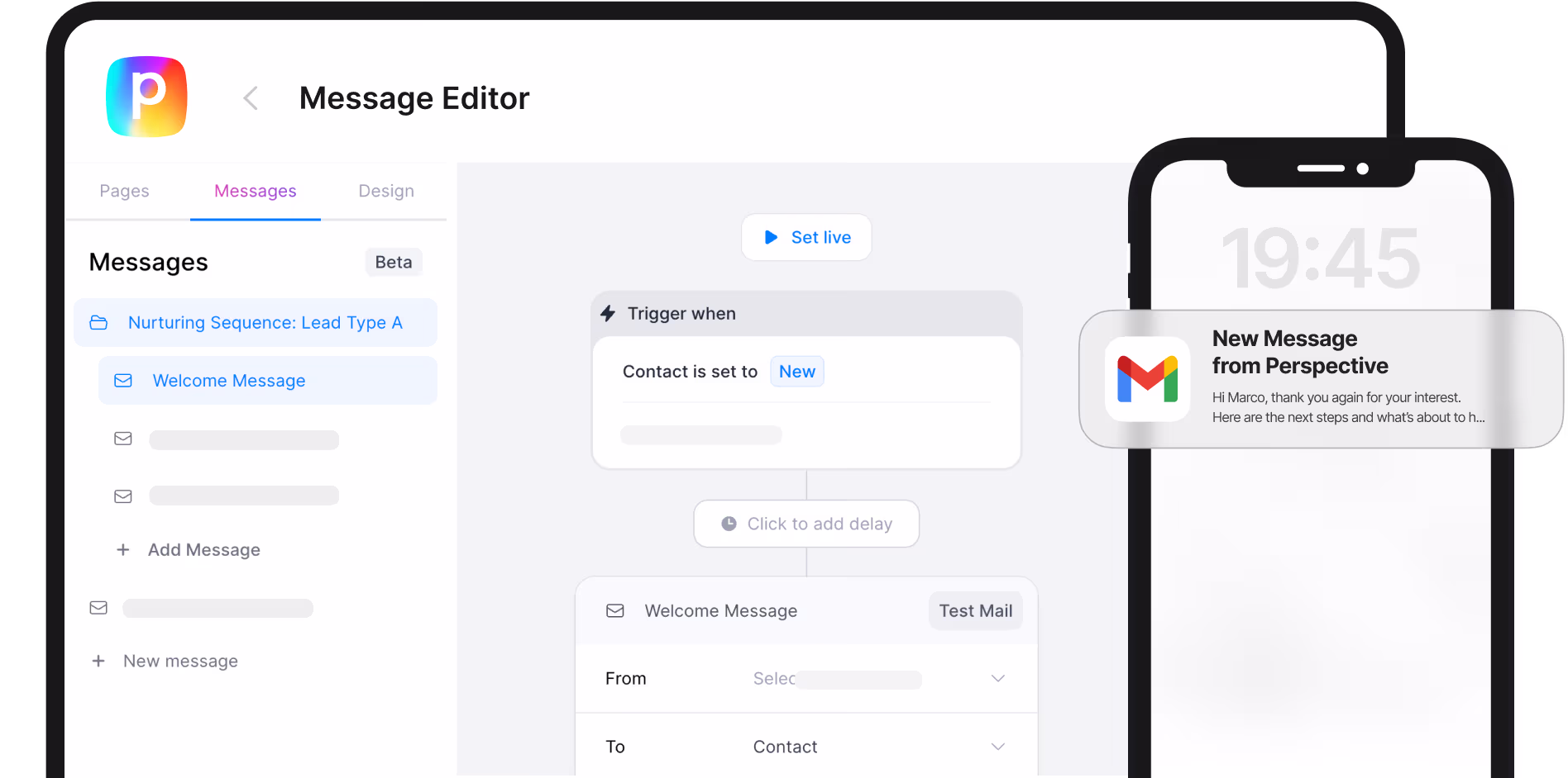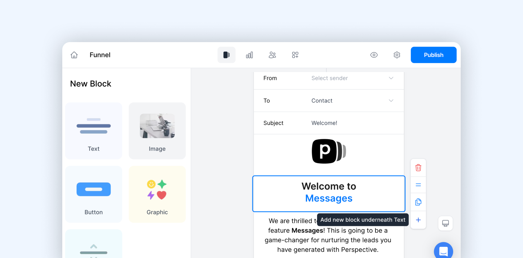 Erstelle komplette E-Mail-Automationen direkt in Perspective — von Follow-ups bis Onboarding. Plane, personalisiere und time jede Nachricht exakt nach Funnel-Antworten, um Leads automatisch zu pflegen und Conversions zu steigern.